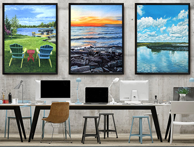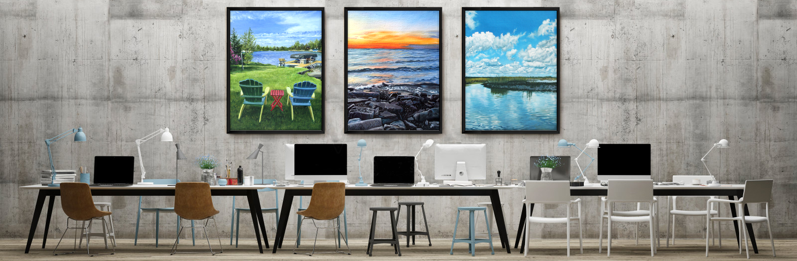 Amid the sleek lines, cool screens, and the soft hum of technology, it hangs on the partition wall—a quiet anomaly. A hand-drawn sketch, framed simply in light wood. This is myDaVinci: not a corporate logo, not a stock photo of a mountain peak, but a piece of art made by human hands.