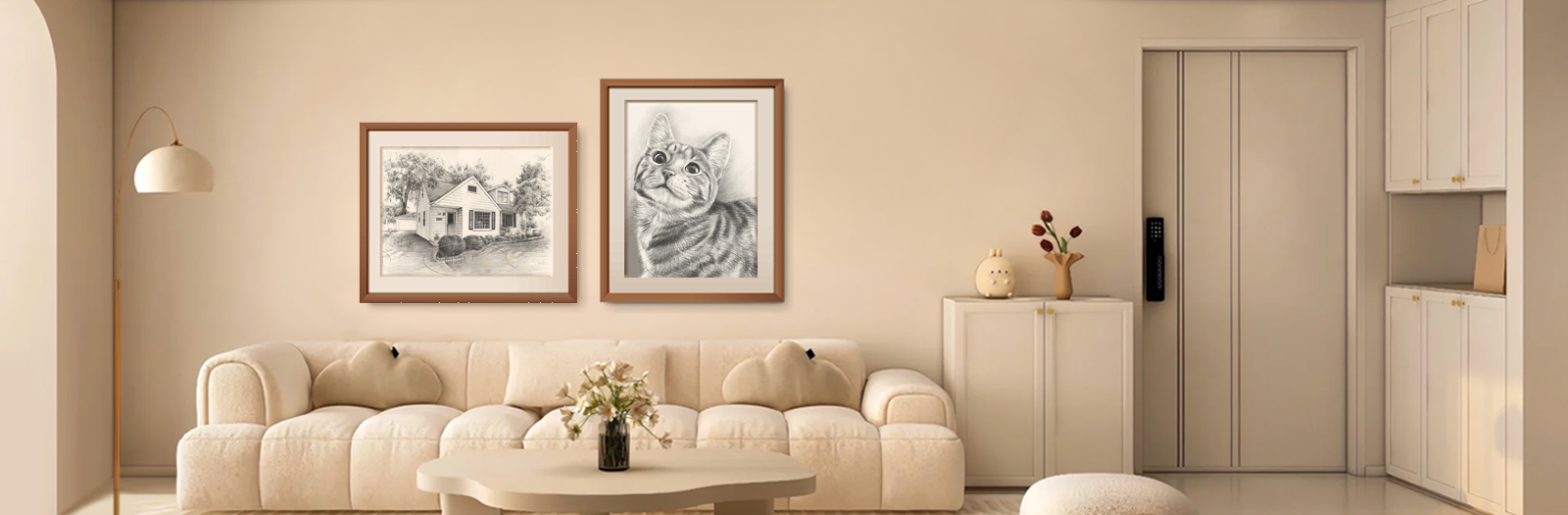 Imagine walking into a living room where a hand-drawn portrait of a family hangs proudly on the wall. It's not just a piece of art; it's a testament to the love and bond shared by the family members. The portrait, created by MyDaVinci, captures the smiles, the laughter, and the warmth of the moment, forever frozen in time. In this living room, MyDaVinci's art becomes a focal point, sparking conversations and evoking memories that bring the family closer together. It's a reminder that love beyond the ordinary can be found in the simplest of moments, captured and preserved forever.